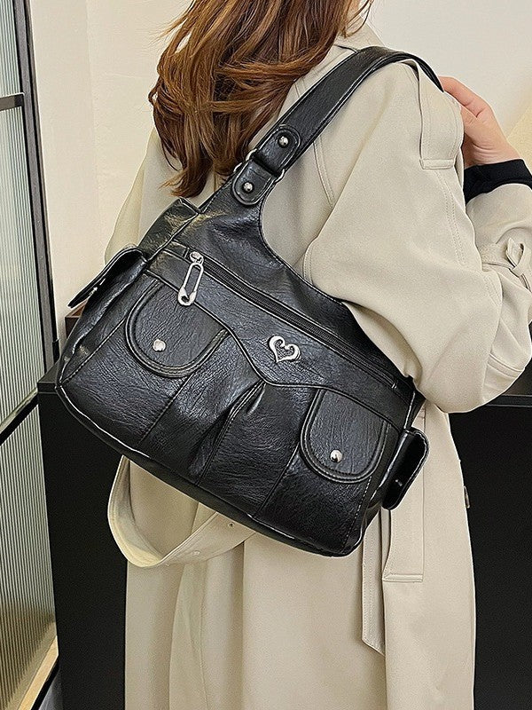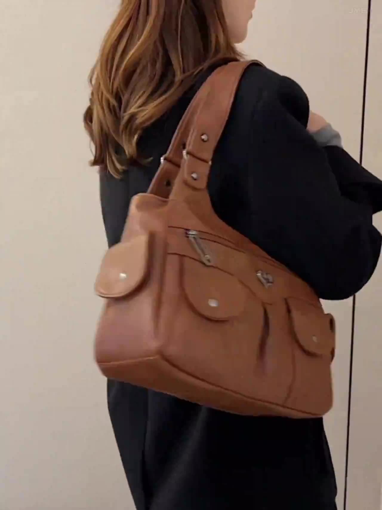 Luksuriøst PU-skinn med doble skulderreimer – ser dyrt ut, føles lett å bære.