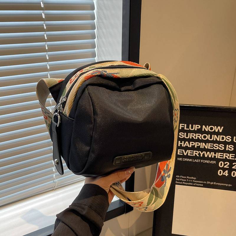 Det som virkelig skiller denne vesken ut er den håndvevde skulderremmen med vakre blomstermønstre i varme jordfarger. Hver rem er et lite kunstverk som gjør vesken din til en samtalestart.