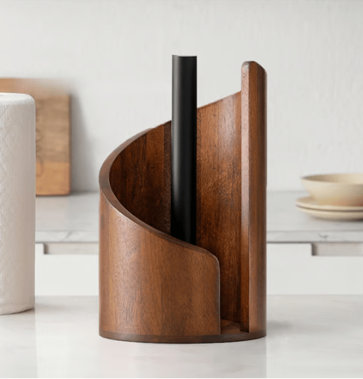 Virkelig et kvalitetsprodukt som føles solid. Treverket og metallet gir et eksklusivt utseende som løfter hele kjøkkenet. Jeg er spesielt glad for at den passer til de helt store 'jumbo'-kjøkkenrullene, slik at man slipper å bytte hele tiden. Veldig robust og verdt pengene